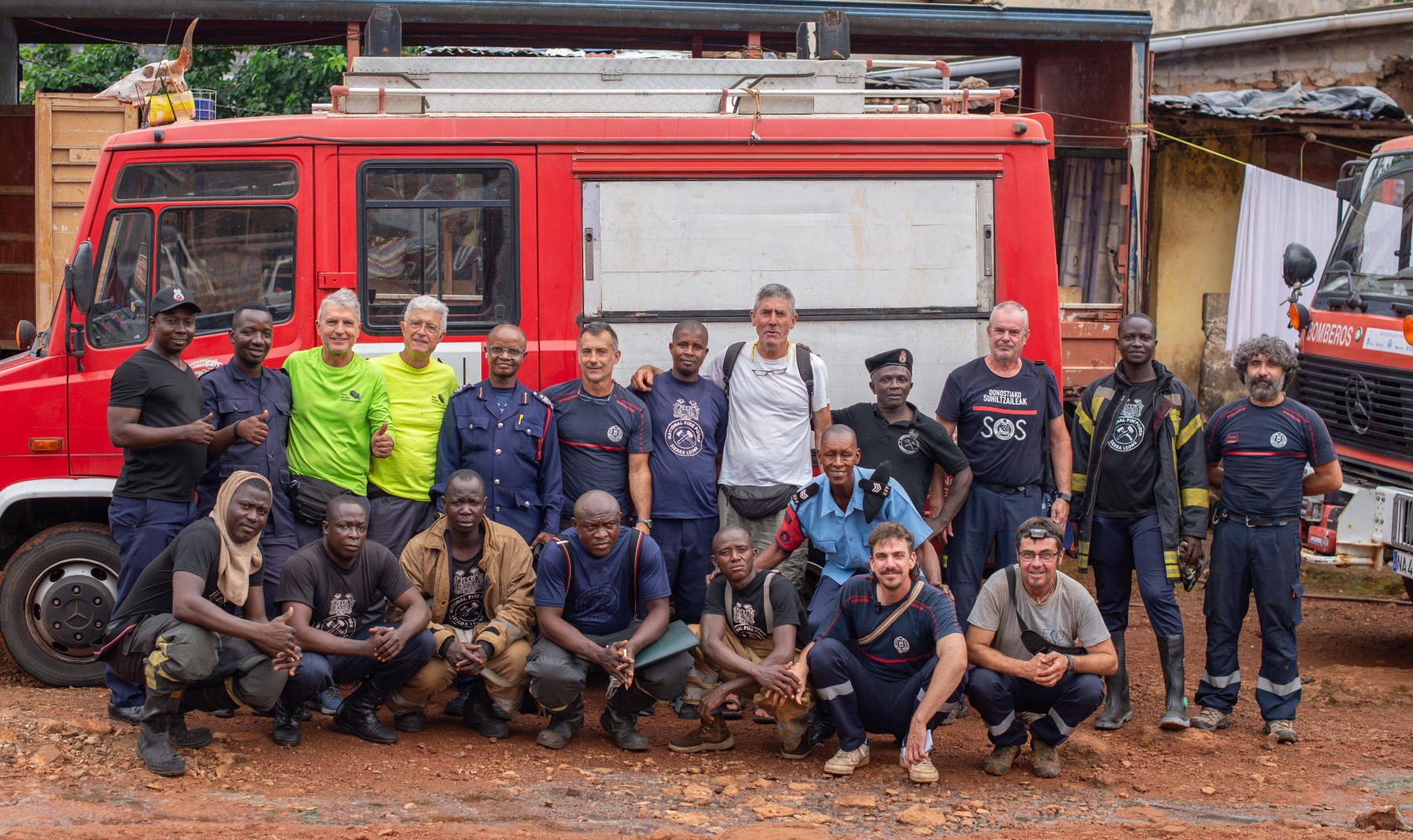 Realizaron el trayecto junto con miembros de la ONG Ekinbide creada por bomberos del parque de San Sebastián y con experiencia en este tipo de expediciones, que transportaron nueve vehículos entre camiones y todoterrenos. Equipos para la formación de bomberos locales en Guinea Bissau y Sierra Leona.