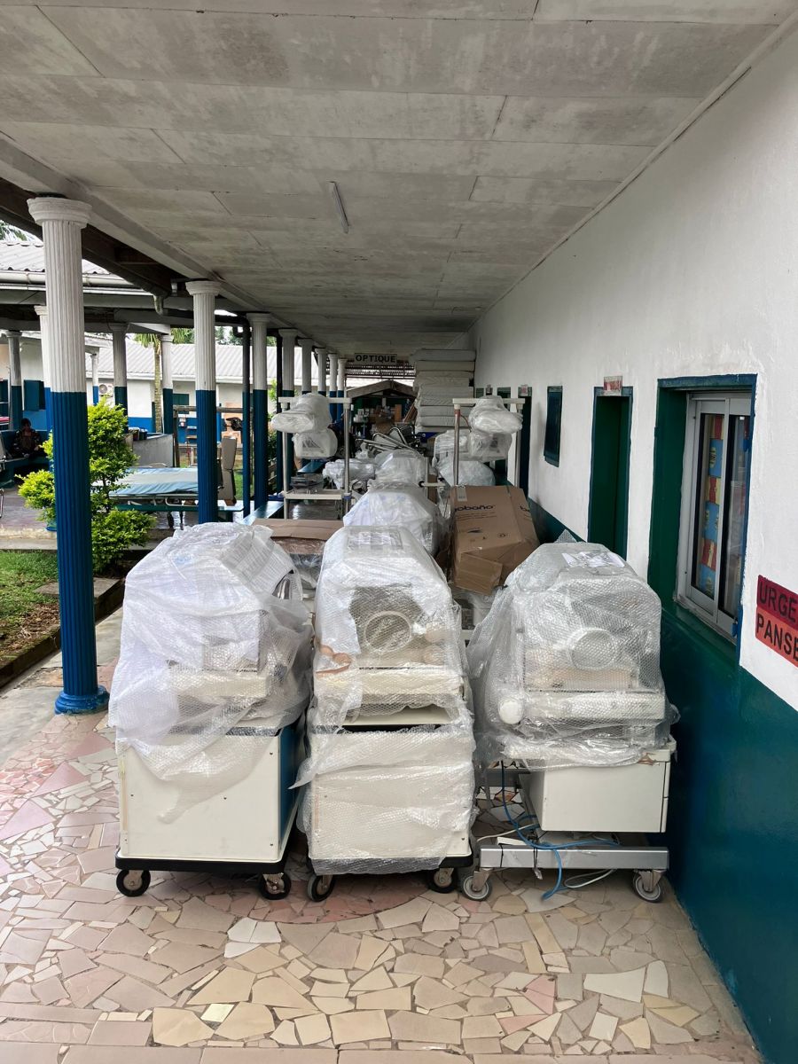 Se cargaron diferentes materiales hospitalarios diversos (ecocardiograma, cunas térmicas y fototerapia para recién nacidos, medicamentos, fungibles, material quirúrgico…), mobiliario y material informático. Casi todo fruto de donaciones (HUN, Hospital de Galdakao, Centros de salud de Osasunbidea, centros privados etc.)