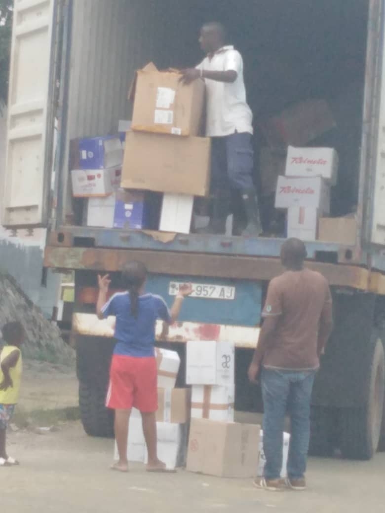 El día 8 de enero de 2023 nos llegan las agradables noticias y el reportaje de fotos sobre la descarga del contenedor que se envíó a Guinea Ecuatorial el sábado 19 de noviembre de 2022.