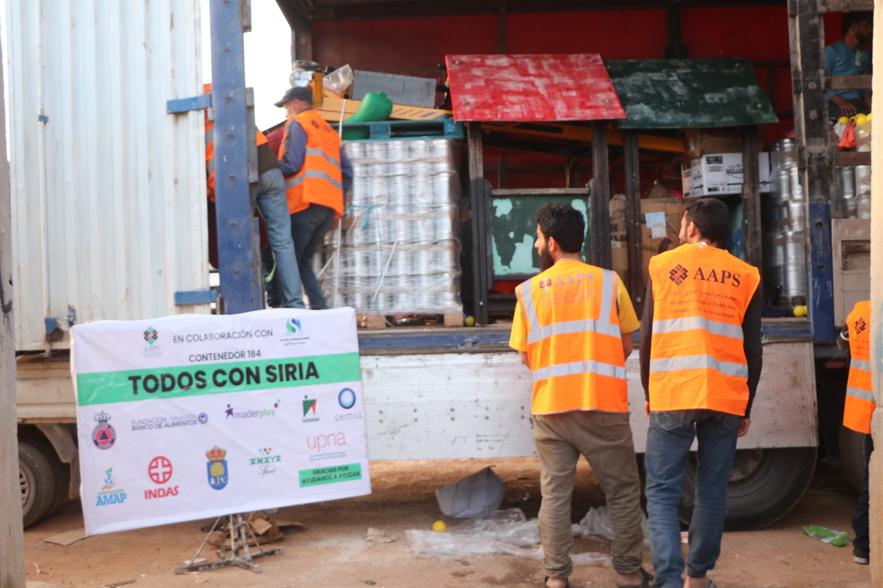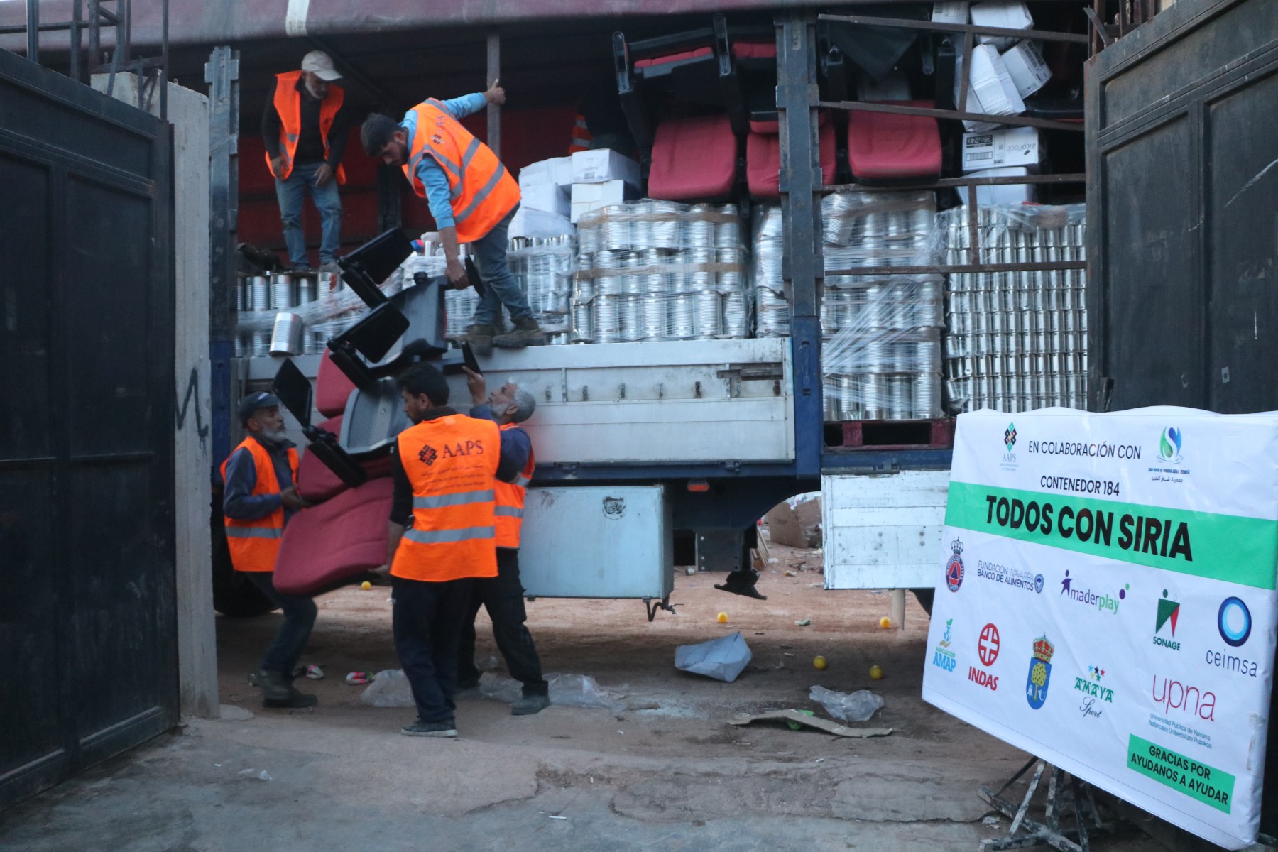 El día 4 de junio de 2023 recibimos las noticias y material gráfico de la descarga del contenedor que cargamos el día 24 de marzo de 2023 con destino Siria, que hacía el número 184 del control de la ONG Asociación Ayuda Pueblo Sirio. (A.A.P.S.)