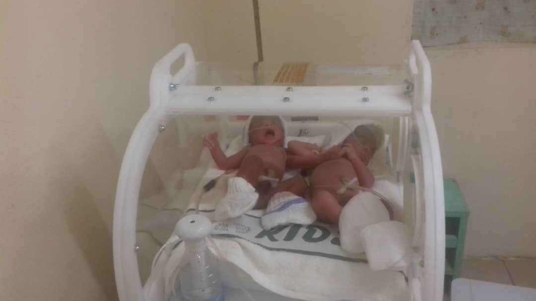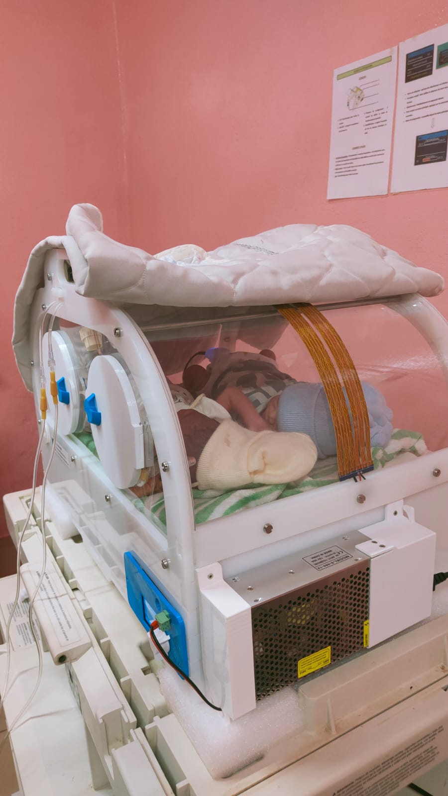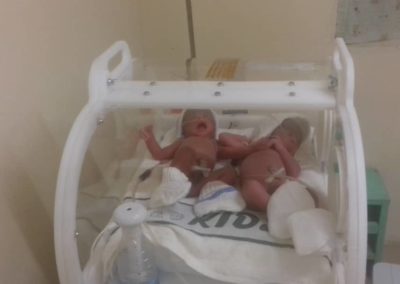 No tenemos que esperar mucho, y para nuestra alegría el estreno es con dos bebés. El lunes 5 Abril de 2021 nacen dos gemelos Unji y Dani, con 32 semanas de gestación que pesaron 1,7 y 1,8 kg y se convierten en nuestras estrellas al “bautizar” la primera cuna climática salesiana!!