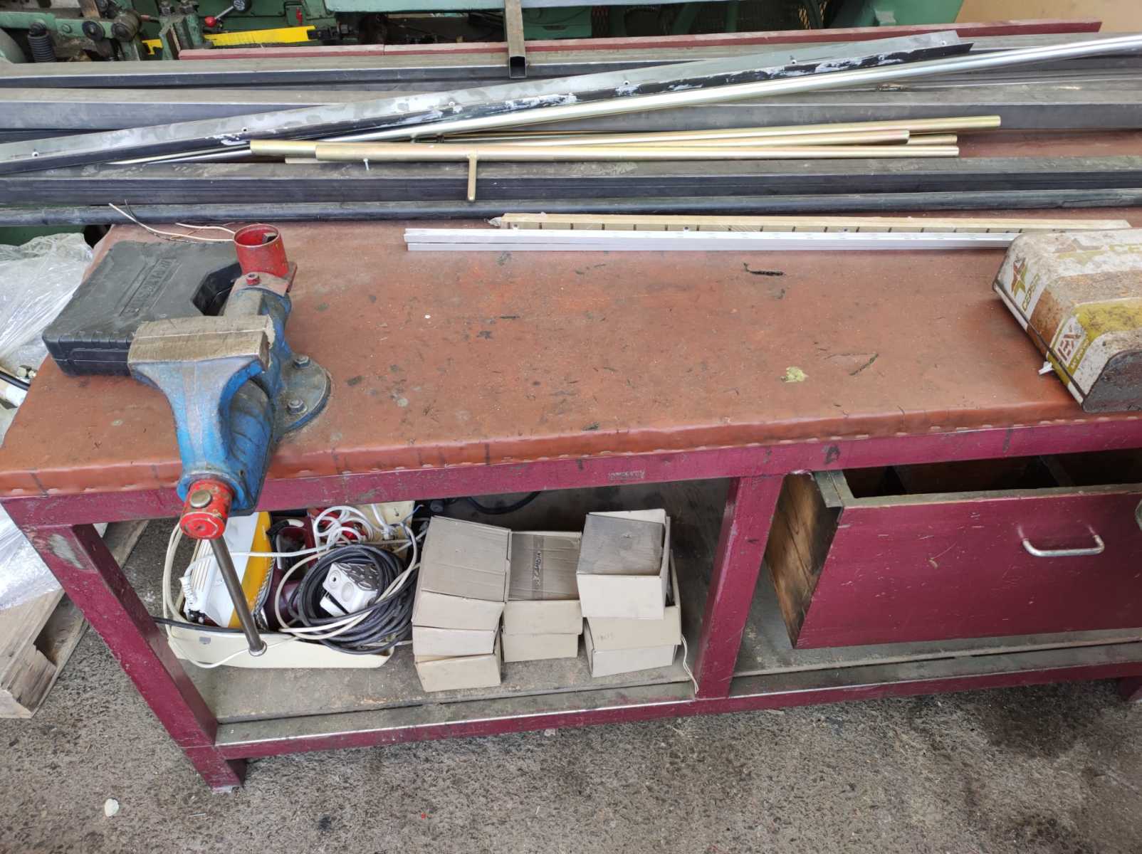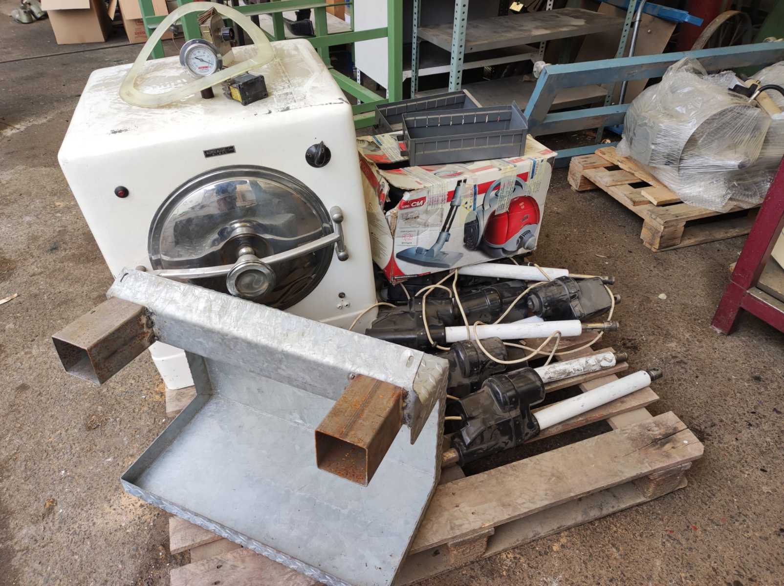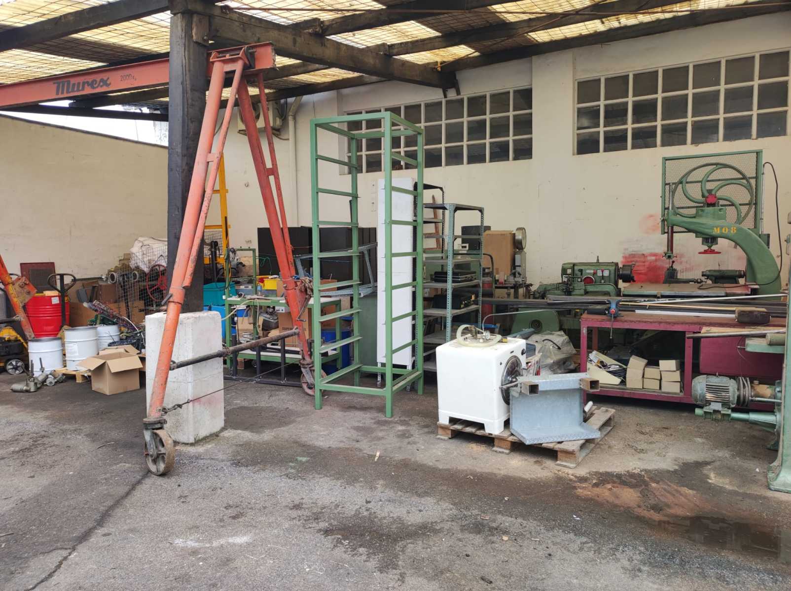 Motores eléctricos, Material eléctrico, Reductoras, Soldadura oxiacetilénica, Torno, Sierra de cinta, Sierra metálica, Soldadura, Bancos de trabajo, Básculas, Estanterías, Estructuras metálicas, Elevador , Cajas de cartón, Maletas plástico.